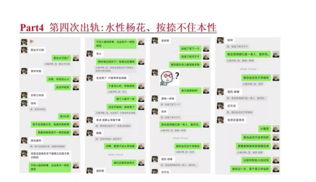 淮北新娘事件可谓触及人类道德的底线,让人感到震惊。新婚不到一个月,她便开始与他人交往,甚至主动约会陌生男子。为了追求性欲的刺激,她不顾一切,甘愿被包养,沦为他人的玩物。表面上,她看似一副乖巧的模样,然而内心却隐藏着如此黑暗的欲望。